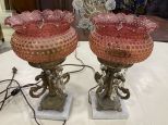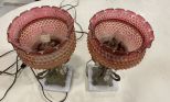 713 Pair of Vintage Cranberry Shade Table Lamps