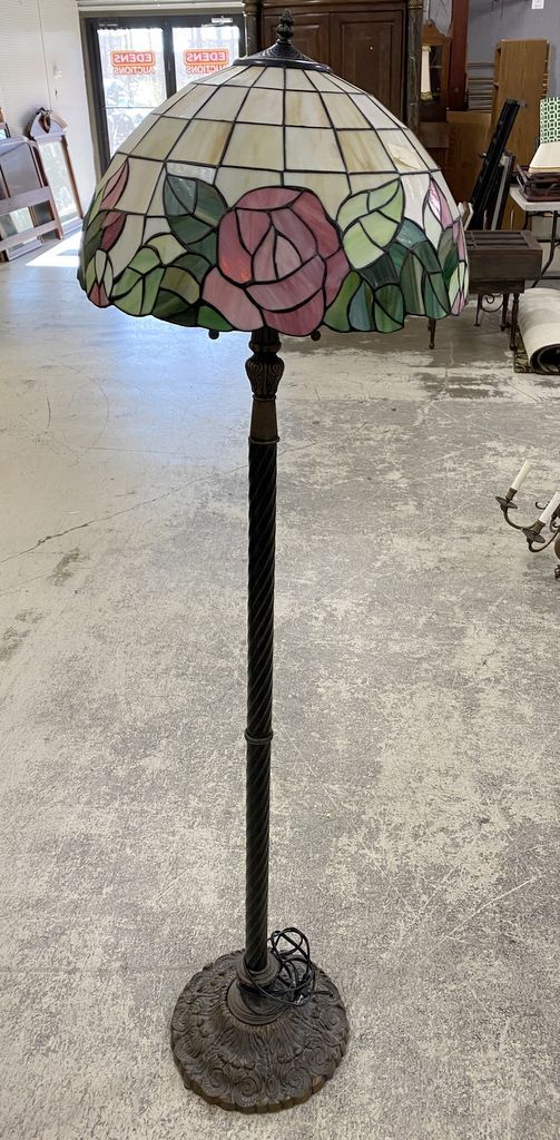 Faux Stained Glass Floor Lamp, has a lean, needs tightening, 63"h. Faux Stained Glass Floor Lamp, has a lean, needs tightening, 63"h.