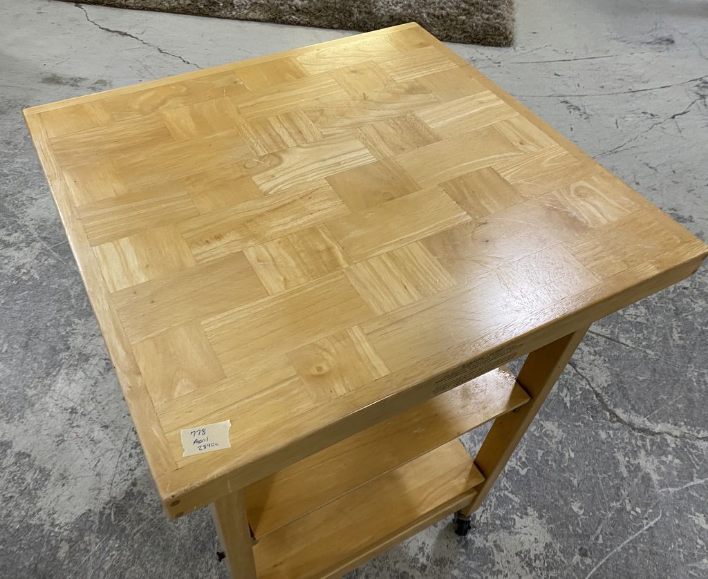 Pine Butcher Table, on wheels, will fold up, 35"h., 24"w. Location Front of Screen Pine Butcher Table, on wheels, will fold up, 35"h., 24"w. Location Front of Screen