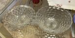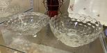 2 Fostoria American Clear bowls, 10"dia. Location Back Tall White Cases. 2 Fostoria American Clear bowls, 10"dia. Location Back Tall White Cases.