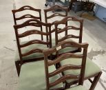 Five Mahogany Dining Side Chairs, one has crack on back, has scratches and wear. Five Mahogany Dining Side Chairs, one has crack on back, has scratches and wear.