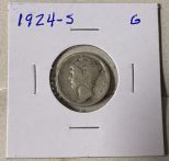 1924-S Mercury Dime, Good, paper case, Location: Wood Slant Showcase 1924-S Mercury Dime, Good, paper case, Location: Wood Slant Showcase