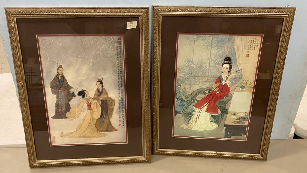 Pair of Asian Framed Prints, matted, 26"h., 19"w. Location: Back Wall Pair of Asian Framed Prints, matted, 26"h., 19"w. Location: Back Wall