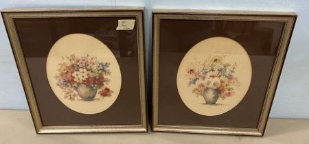 M. Black Flower Vases Prints, oval matted, framed, 15"h., 12"w. Location: Back Metal Cases/Backside M. Black Flower Vases Prints, oval matted, framed, 15"h., 12"w. Location: Back Metal Cases/Backside