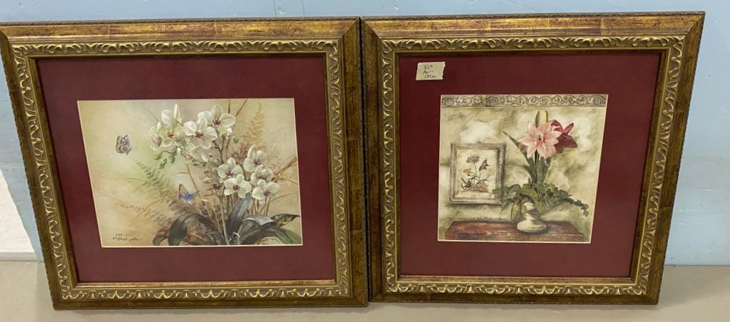 Two Framed Flower Prints, matted, framed, 18"h. 19"w. Location: Back Metal Cases/Backside Two Framed Flower Prints, matted, framed, 18"h. 19"w. Location: Back Metal Cases/Backside