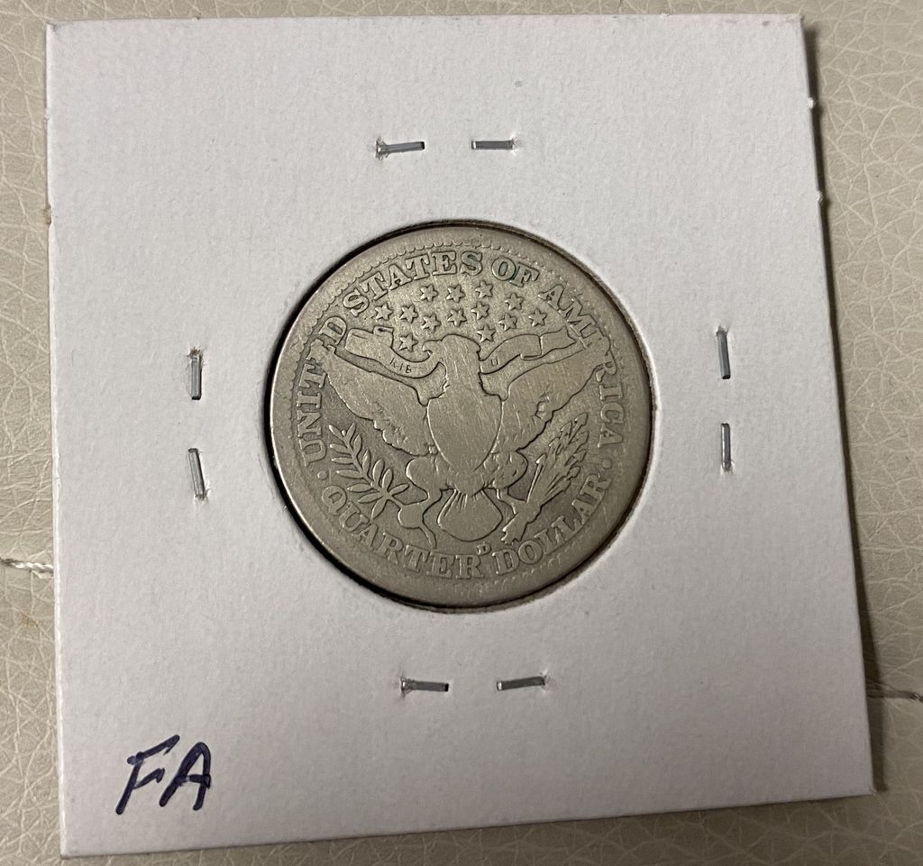 1915-D Barber Quarter, good plus, paper case, Location: Wood Slant Showcase 1915-D Barber Quarter, good plus, paper case, Location: Wood Slant Showcase