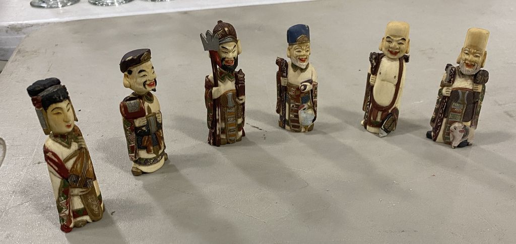 Set of Vintage Hand Carved and Painted Chinese Soapstone Perfume Snuff Figurine Bottles. Total of 6. Location Center Front Showcases Set of Vintage Hand Carved and Painted Chinese Soapstone Perfume Snuff Figurine Bottles. Total of 6. Location Center Front Showcases