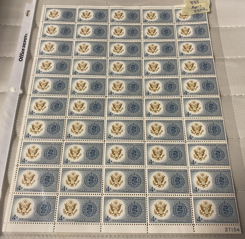 Sheet of World United Against Malaria Stamps, Location Showcases behind Screen Sheet of World United Against Malaria Stamps, Location Showcases behind Screen