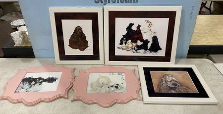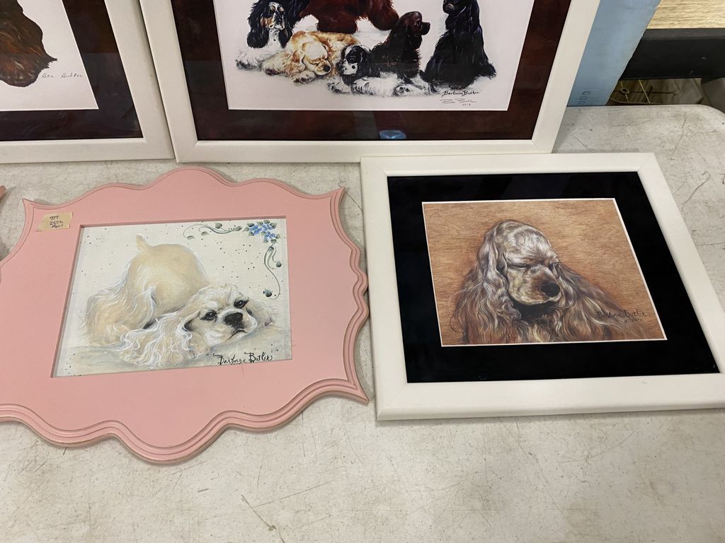 Five Cocker Spaniel Prints by Barbara Butler, framed, one signed. Location: Black Silver Metal Shelves Five Cocker Spaniel Prints by Barbara Butler, framed, one signed. Location: Black Silver Metal Shelves