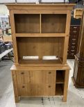 Pressed Wood Office Hutch, one piece, two drawers, base trim needs reattachment, 70"h., 42"w., 21"d. Location Right Side 2n Row Pressed Wood Office Hutch, one piece, two drawers, base trim needs reattachment, 70"h., 42"w., 21"d. Location Right Side 2n Row