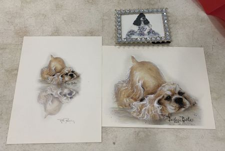Barbara Butler Signed Dog Prints, Location Case by Auction Stand, Location: Back Metal Cases/Frontside Barbara Butler Signed Dog Prints, Location Case by Auction Stand, Location: Back Metal Cases/Frontside