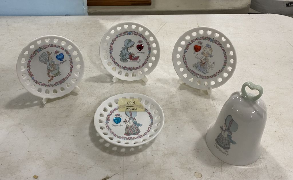1094 4 Small Precious Moments Collector Plates and Bell