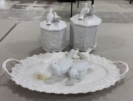 1124 Porcelain Bird Tray, Figurines, and Containers