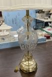 Pair of Etched Clear Glass Table Lamps With Gold Footed Base, Location Right Side 6th Row Pair of Etched Clear Glass Table Lamps With Gold Footed Base, Location Right Side 6th Row