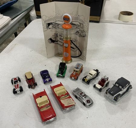 Grouping of Collector Model Cars and Gulf Collector Model Gas Pump. Grouping of Collector Model Cars and Gulf Collector Model Gas Pump.