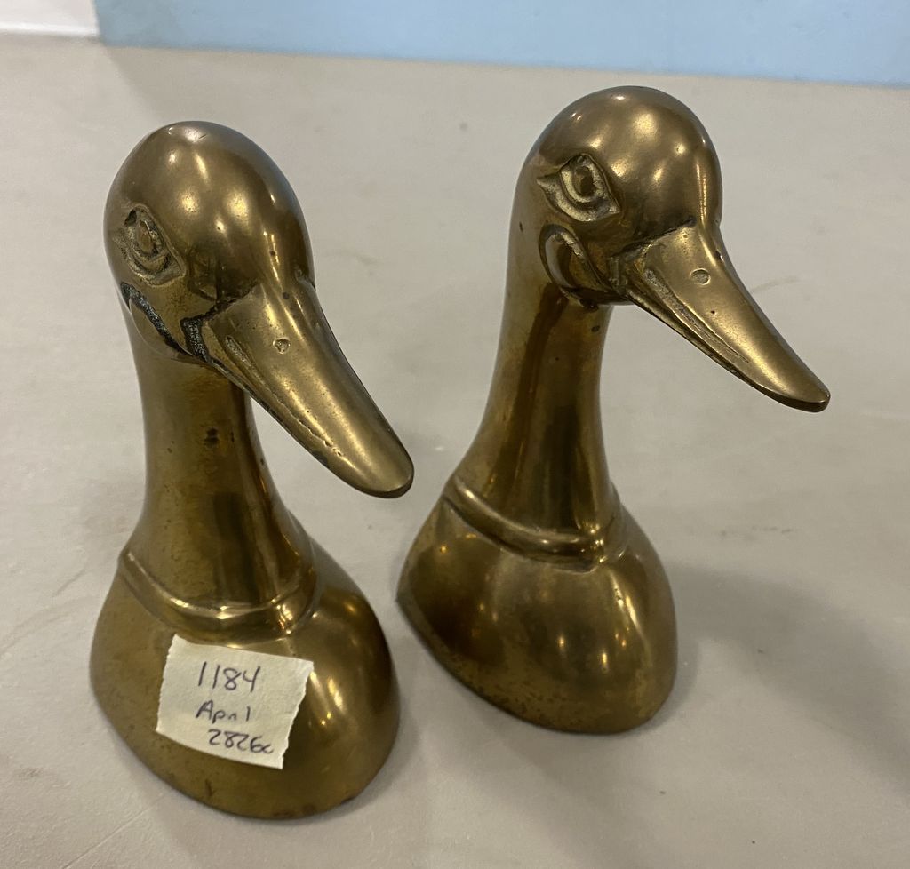 Pair of Brass Swan Head Bookends, made in Korea, 6"h. Location: Back White Cases Pair of Brass Swan Head Bookends, made in Korea, 6"h. Location: Back White Cases