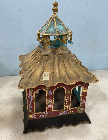 Decorative Metal Asian Temple, top lift off, 21"h. Location Center Front Showcases Decorative Metal Asian Temple, top lift off, 21"h. Location Center Front Showcases