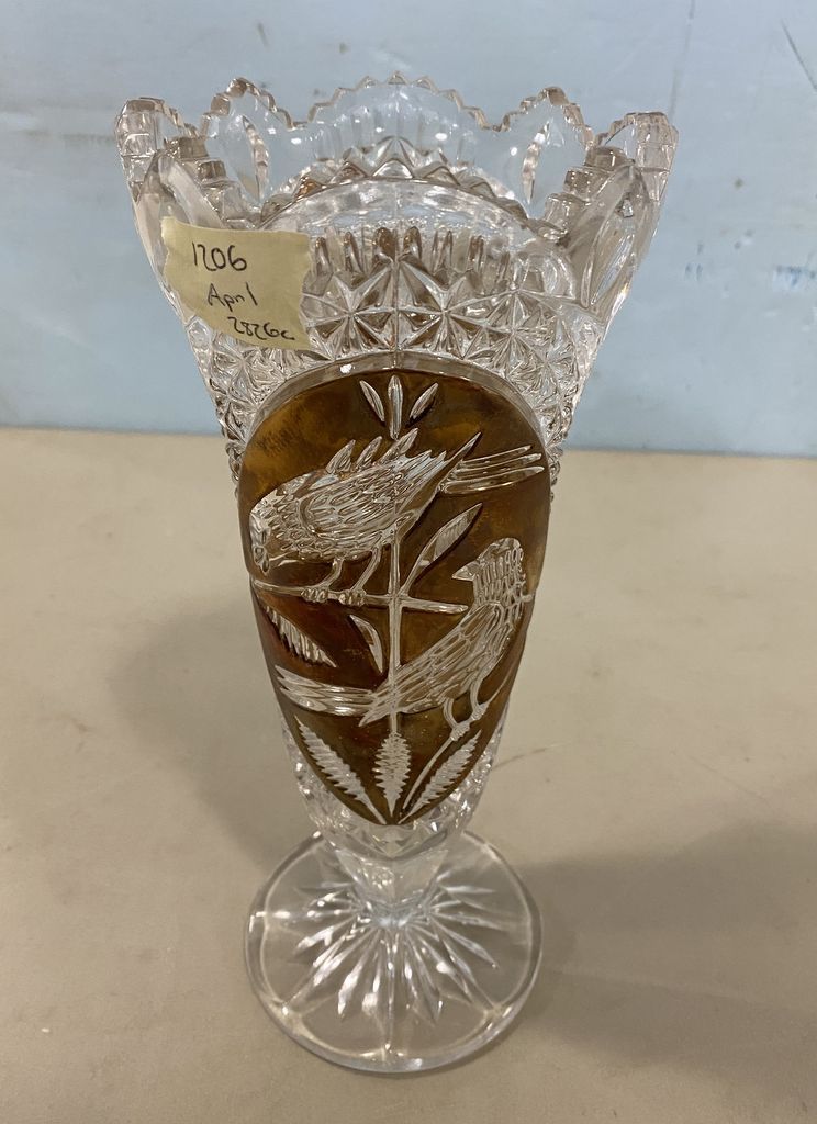 Pressed Glass Bird Flower Vase, 10"h. Location: Back White Cases Pressed Glass Bird Flower Vase, 10"h. Location: Back White Cases
