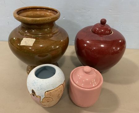 Four Pottery Glazed Vases, tallest is 10"h. Four Pottery Glazed Vases, tallest is 10"h.