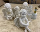 1219 Four Ceramic Cherubs, Glass Angel, and Bell