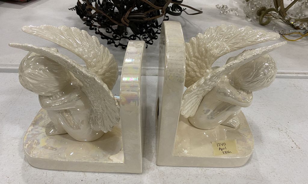 Ceramic Cherub Bookends, Location: Back Metal Cases/Backside Ceramic Cherub Bookends, Location: Back Metal Cases/Backside