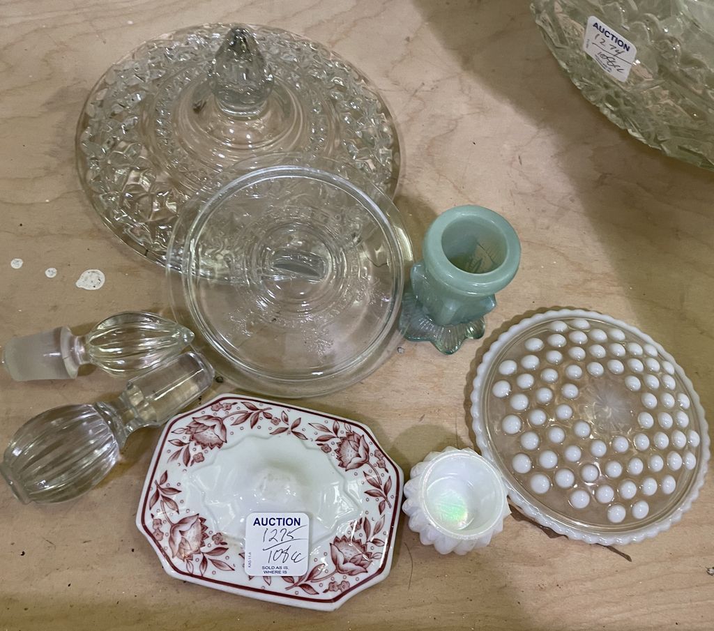 1275 2 Glass Stoppers, 4 Glass Lids, Toothpick Holder, And A Salt