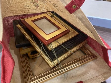 Bag of Picture Frames, total. Location: Back Wall Bag of Picture Frames, total. Location: Back Wall