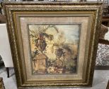 Large Framed Print of Urns, gold gilt framed, glassed, matted, 60"h., 56"w. Location: Behind Center Of Room. Large Framed Print of Urns, gold gilt framed, glassed, matted, 60"h., 56"w. Location: Behind Center Of Room.