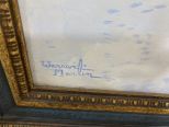 Warren Martin Cattle Wagon Painting, on board, signed lower left, gold gilt framed, 29"h., 41"w. Location: Behind Center Of Room. Warren Martin Cattle Wagon Painting, on board, signed lower left, gold gilt framed, 29"h., 41"w. Location: Behind Center Of Room.