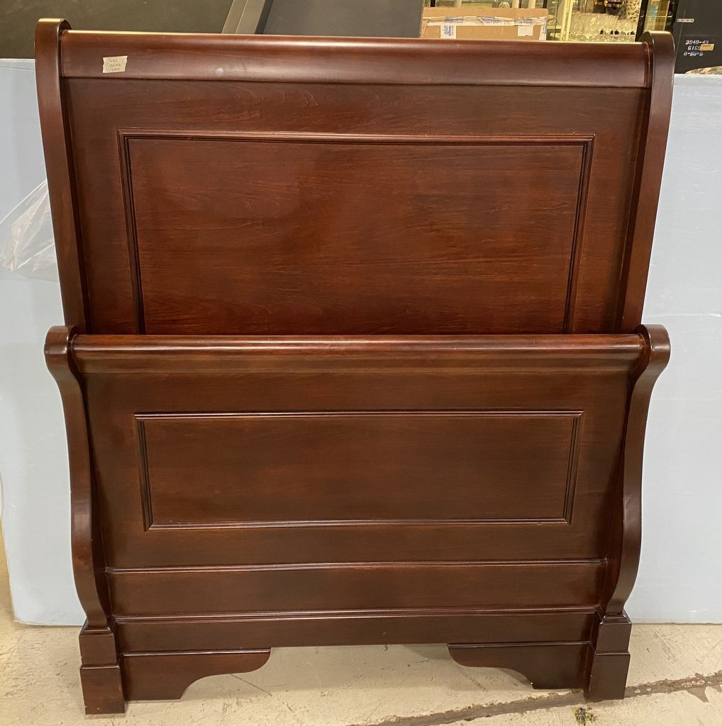 Solid Cherry Sleight Twin Bed, has rails, and included mattress optional, good condition finish, clean. Solid Cherry Sleight Twin Bed, has rails, and included mattress optional, good condition finish, clean.