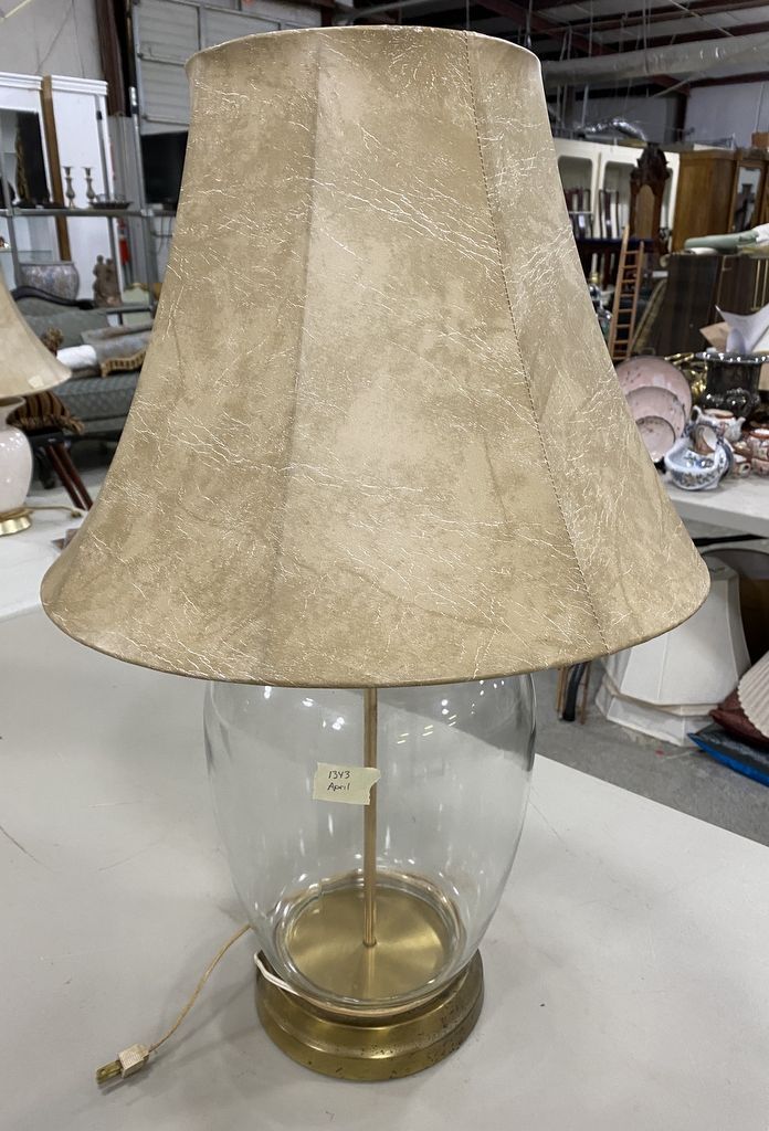 Glass Vase Lamp, with shade, 29"h. Location: Left Side 6th Row Glass Vase Lamp, with shade, 29"h. Location: Left Side 6th Row