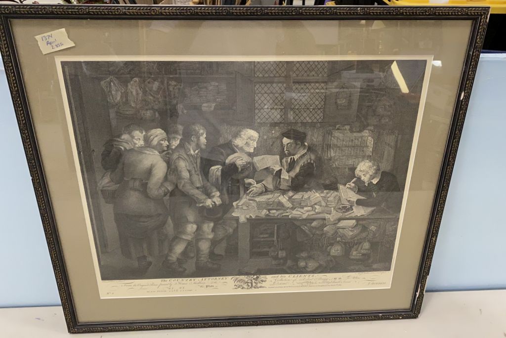 Country Attorney and His Clients Framed, 23"h., 26"w. Country Attorney and His Clients Framed, 23"h., 26"w.