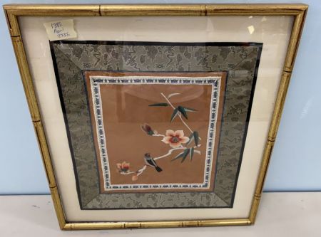 Asian Framed Silk, bamboo style framed, 17"h., 15"w. Asian Framed Silk, bamboo style framed, 17"h., 15"w.