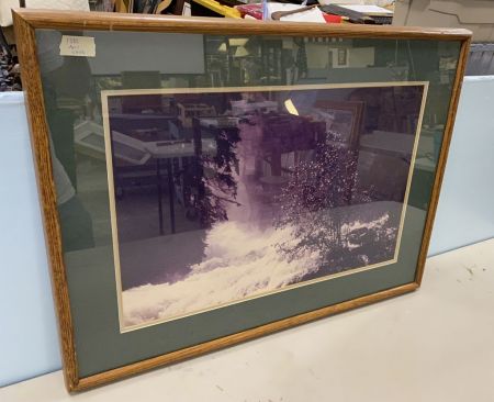 River Flowing Photograph, matted, framed, 24"h., 31"w. Location: Left Side 7th Row River Flowing Photograph, matted, framed, 24"h., 31"w. Location: Left Side 7th Row