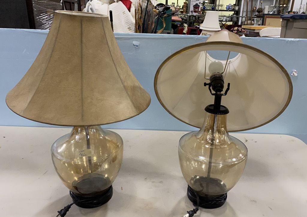 Pair of Glass Vase Lamps, 23"h. Location: Black Silver Metal Shelves Pair of Glass Vase Lamps, 23"h. Location: Black Silver Metal Shelves