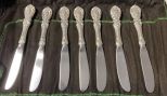 Seven Francis I Butter knives, sterling handled, stainless blade, 6". Seven Francis I Butter knives, sterling handled, stainless blade, 6".