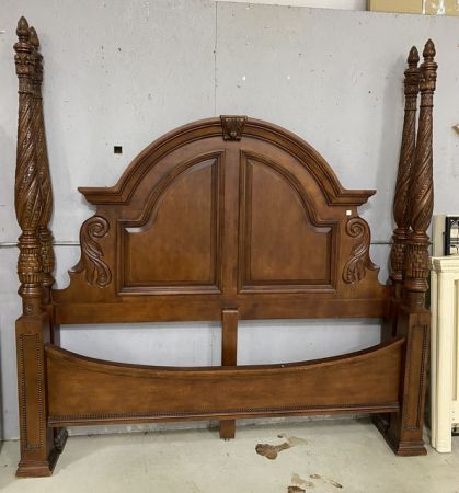 Antique Reproduction Cherry King Size Poster Bed, light scratches, has wood rails. Antique Reproduction Cherry King Size Poster Bed, light scratches, has wood rails.