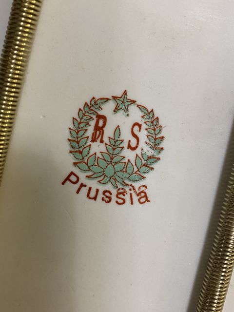 RS Prussia Porcelain Small Platter, hanging wire, hand painted floral, 11"w. RS Prussia Porcelain Small Platter, hanging wire, hand painted floral, 11"w.