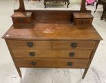 Federal style dresser, with mirror, four drawers, inlaid design, finish has scratches and wear, 39"h., 45"w., missing back mirror. Federal style dresser, with mirror, four drawers, inlaid design, finish has scratches and wear, 39"h., 45"w., missing back mirror.