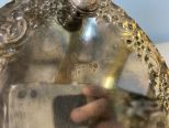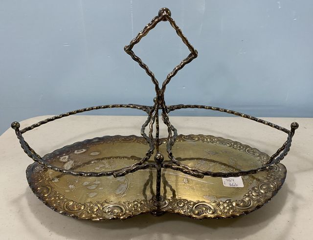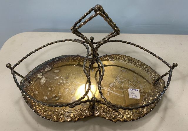 Vintage silver plated decanter stand, two slot English marked, footed, light wear, 9"h., 15"w. Vintage silver plated decanter stand, two slot English marked, footed, light wear, 9"h., 15"w.