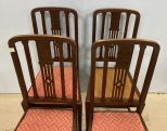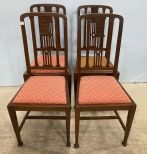 Four English Art Decor 1930's Walnut Chairs, three matching cushions, one burlap cushion. Four English Art Decor 1930's Walnut Chairs, three matching cushions, one burlap cushion.
