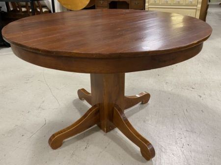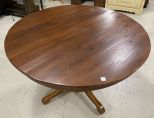 Vintage Mahogany Pedestal round top dining table, includes lazy Susan center piece, has some scratches and wear, 29"h., 45"dia. Vintage Mahogany Pedestal round top dining table, includes lazy Susan center piece, has some scratches and wear, 29"h., 45"dia.