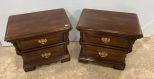 Pair Johnston Tombigee Co. Nightstands, cherry finish, two drawers, good condition, 24"h., 26"w. Pair Johnston Tombigee Co. Nightstands, cherry finish, two drawers, good condition, 24"h., 26"w.