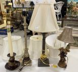 Four Decorative Lamps, resin palm tree lamp, metal twist candle stick lamp, two candle stick lamps, modern. Four Decorative Lamps, resin palm tree lamp, metal twist candle stick lamp, two candle stick lamps, modern.