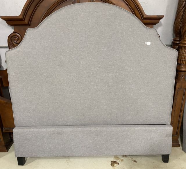 Modern Queen Size Grey Upholstered Bed, arch headboard, footboard, rails. Modern Queen Size Grey Upholstered Bed, arch headboard, footboard, rails.