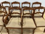 Eight Vintage Mahogany Duncan Phyfe Dining Chairs, two arms, 6 sides, finish has scratches and wear. Eight Vintage Mahogany Duncan Phyfe Dining Chairs, two arms, 6 sides, finish has scratches and wear.