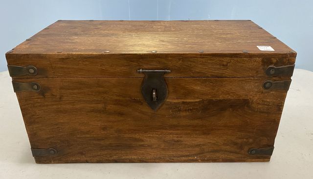 Wood small storage trunk, wood, lift top, latch and handles, 10"h., 20"w. Wood small storage trunk, wood, lift top, latch and handles, 10"h., 20"w.