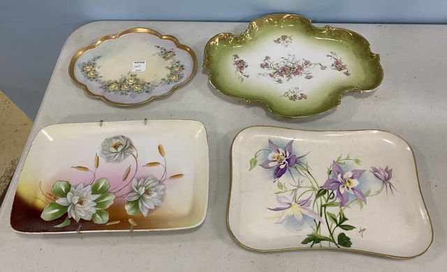 Four Porcelain Vanity Trays, hand painted, GOA France, Altenburg China Germany, Limoge, FRG limoge. Four Porcelain Vanity Trays, hand painted, GOA France, Altenburg China Germany, Limoge, FRG limoge.