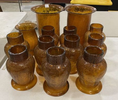 Group of Amber Mexican Art Glass Shades, crackle finish, 13 total. Group of Amber Mexican Art Glass Shades, crackle finish, 13 total.