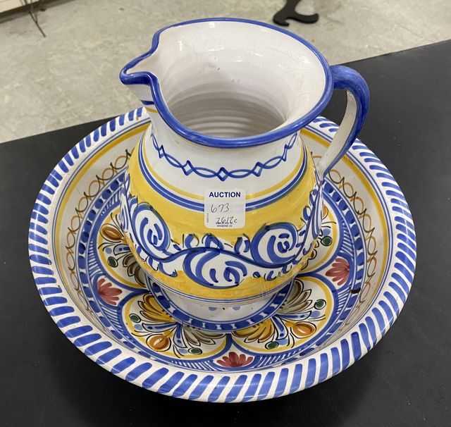 Hand Painted Ceramic Pitcher and Bowl, 11"dia. Hand Painted Ceramic Pitcher and Bowl, 11"dia.
